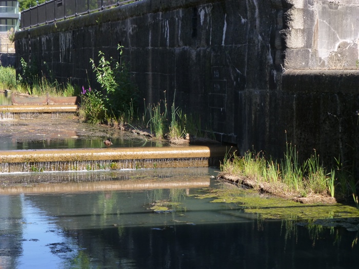 By summer 2018, the vegetation is well established on most of the rafts. The rafts along Spirit Quay already form the impression of a continuous green edge to the otherwise stark canal (see header photo), with the flowers of Purple Loosestrife adding colour. Earlier in the year, Yellow Iris and Marsh Marigold also flowered. Moorhens, Coots (photo left) and Canada Geese have all nested on the new rafts, and they are used for resting by these species as well as Egyptian Geese, Tufted Ducks and Mallards. They also provide shelter for fish, helping them to escape predators such as gulls, herons and Cormorants.
